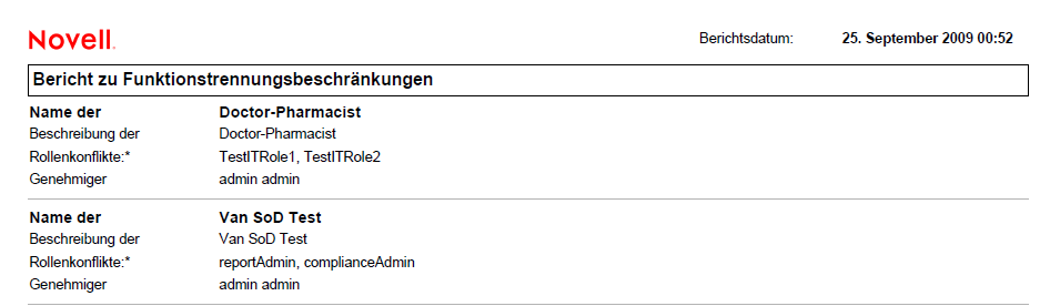 Abbildung 18-3 Beispielbericht zu Funktionstrennungsbeschränkungen