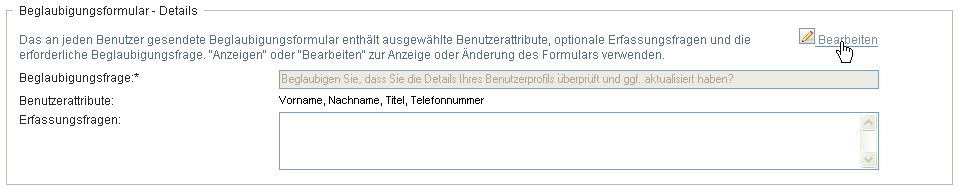 Bei einem Benutzerprofilbeglaubigungsprozess muss jedes Mitglied einer ausgewählten Gruppe oder Rolle die Daten beglaubigen.