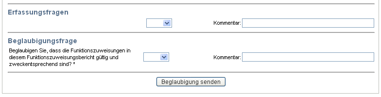 Das Formular zeigt bei allen Beglaubigungstypen Steuerelemente an, mit deren Hilfe Sie die erforderliche Beglaubigungsfrage sowie alle zusätzlichen Erfassungsfragen, die der Beglaubigungsprozess umfasst, beantworten können: