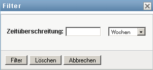 Das Dialogfeld „Filter“ wird angezeigt. Es enthält verschiedene Felder, die Sie verwenden können, um anzugeben, wie die Daten gefiltert werden sollen: