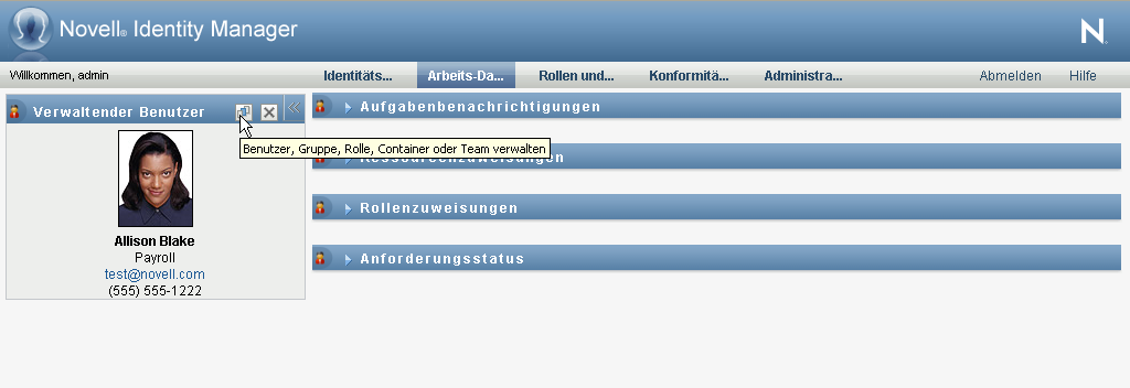 Klicken Sie im Abschnitt „Benutzerprofil“ auf die Schaltfläche Benutzer, Gruppe, Rolle oder Container verwalten.