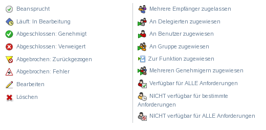 Zeigt an, dass die Bearbeitung einer bestimmten Anforderung abgeschlossen ist und die Anforderung genehmigt wurde.