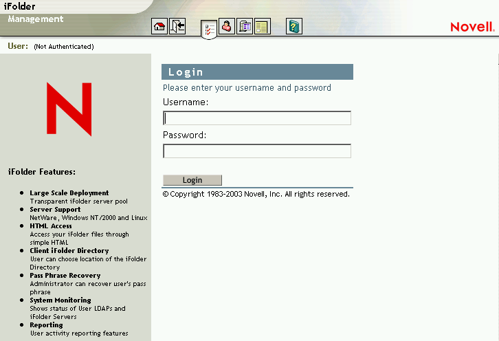 Melden Sie sich beim Abschnitt "User Management" (Benutzerverwaltung) der iFolder-Verwaltungskonsole an.