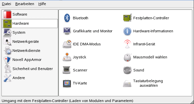 YaST enthält verschiedene Module zum Anpassen Ihrer Systemeinstellungen. Sie lassen sich in folgende Kategorien einteilen: