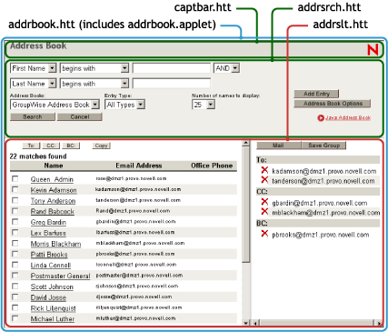 The Address Book is available in both Java-enhanced mode and HTML mode. They appear as follows.