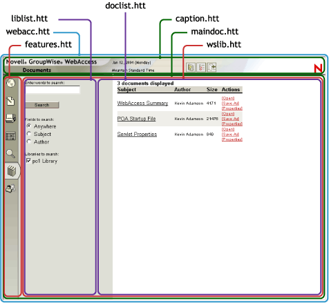 The Document Management Window is similar to the Main Message Window, except that workspace.htt calls two different files: liblist.htt and doclist.htt.