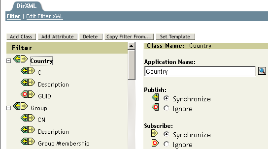 You should modify the filters on the Publisher and Subscriber channels to include object classes and attributes you want available for NsureTM Identity Manager processing. To modify a filter: