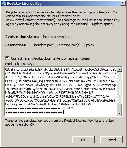You can obtain a License Key from the Novell Customer Center. The key code is delivered via a Web link in a file named <GUID>.html, such as 4add-adf2-62b8-4296-ab0e-ce6f-1234-1234.html.