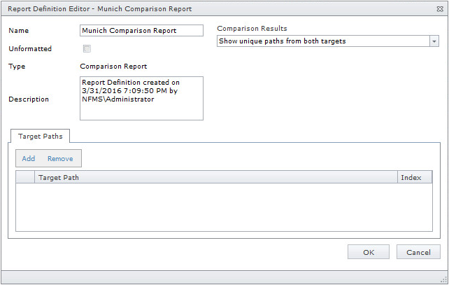 Show paths unique to the first target: The report indicates only the unique folder and file names found in the first target path.