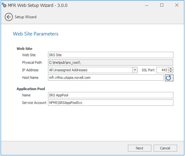 Web Site: The default name for the File Reporter Web site. If the default name does not conform to your organization’s naming standards, you can edit it.
