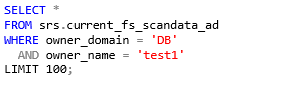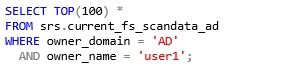 Example: Select all files for a given server owned by a specific AD user, limited to 100 entries.