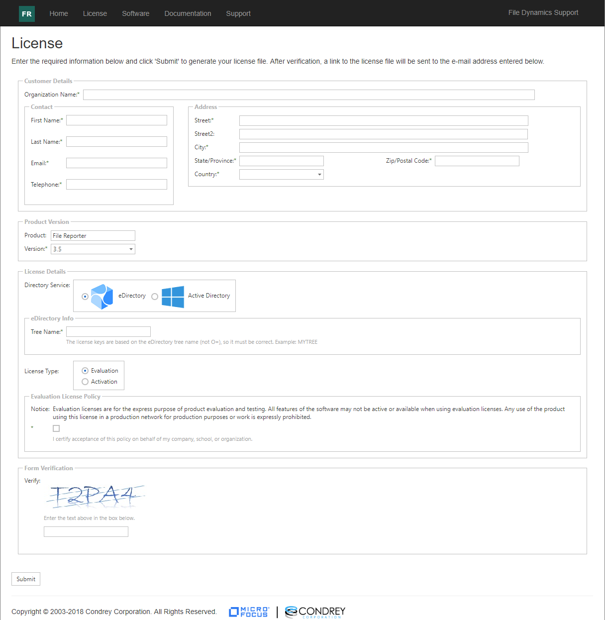 Micro Focus File Dynamics requires a production license file or evaluation license file that you obtain from Micro Focus.