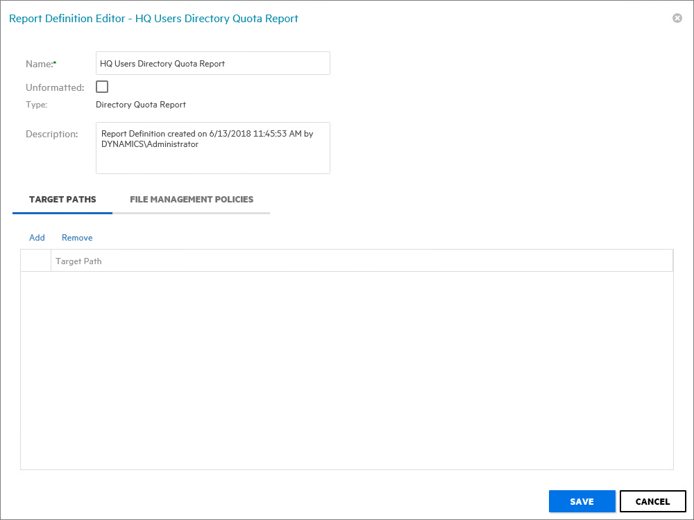 Before generating any type of Directory Data report, you must first conduct a File System scan on the volumes or shares you want to report on.