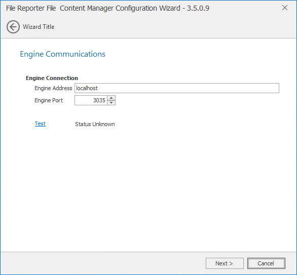 Engine Address: Specify the DNS name or IP address to the server hosting the Engine here.