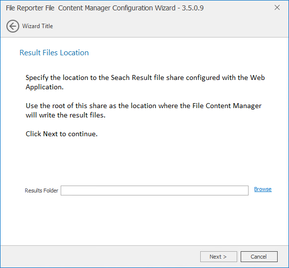 Use this page to specify the location where search result files are to be stored when using the File option in a File Content Job Definition.