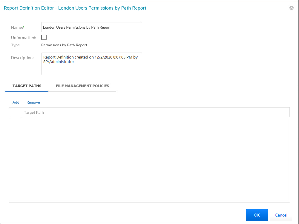 From the Target Paths tab, click Add.