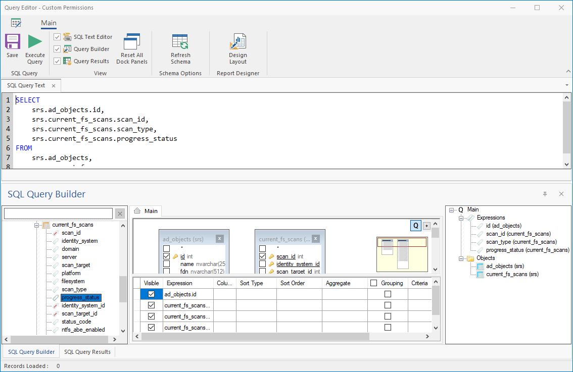 NOTE:For details and examples of the supported database functions, tables, and views that you can utilize in Custom Query reports, refer to the Micro Focus File Reporter 4.0 Database Schema and Custom Queries Guide.