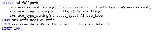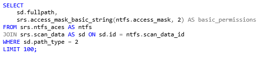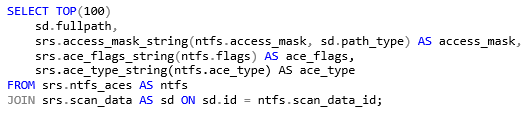 Note that the values displayed here are functionally equivalent to what is seen in the advanced section of the security tab for an NTFS file system entry: