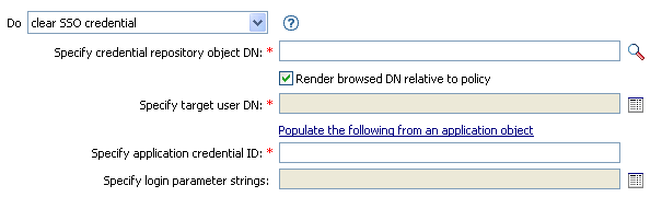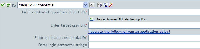 (Optional) To clear the SSO credential, so objects can be deprovisioned, select the action, then fill in the following fields: