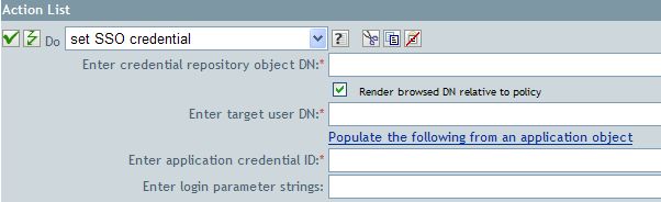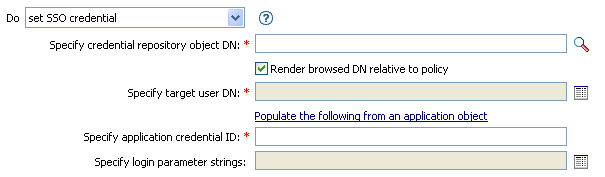 (Optional) To set the SSO credential when a user object is created or when a password is modified, select the action, then fill in the following fields: