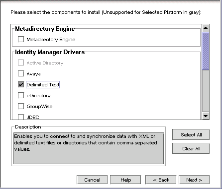 By default, the Identity Manager Driver for Delimited Text is installed when you install the Metadirectory engine. In case the driver wasn't installed at that time, this section can help you install it.