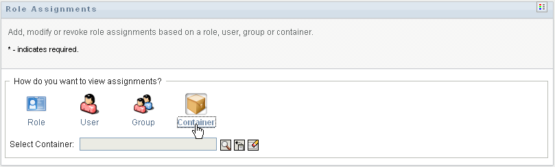 Select the role to which you want to assign the users, groups, or containers.