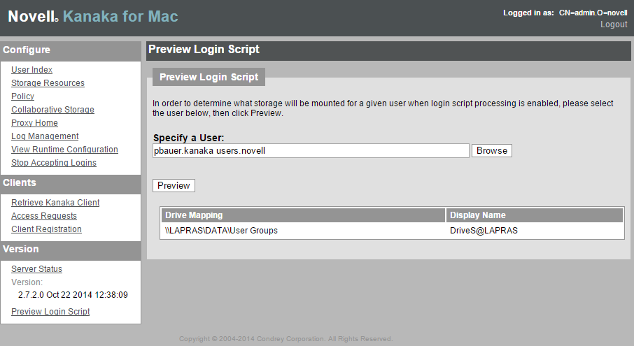 When you preview the login script parsing from the Kanaka User Interface, you see all the drive mappings that will occur for any particular user.