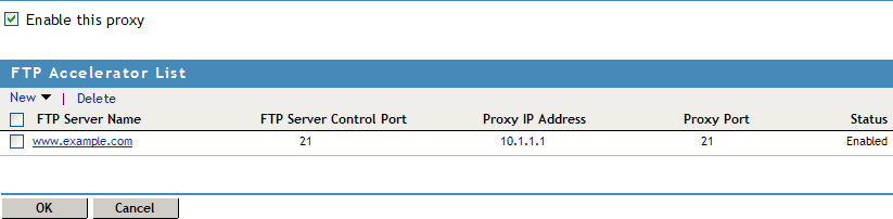 Enable This Particular Accelerator: Select this check box to enable the configured server. You can disable the server if you are configuring multiple accelerations.You can disable one or more servers without affecting the other accelerated sites.