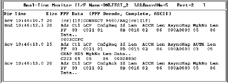 Select Real-Time Monitor to view and capture the PPP protocol exchanges.