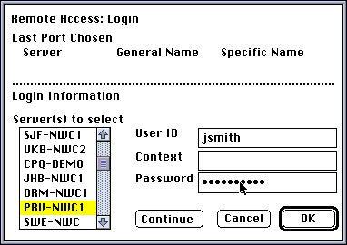 When you configure Mac2NCS in this manner, remote users will be presented with a menu of sessions when they access the LAN. They can then select a session on a particular Macintosh.
