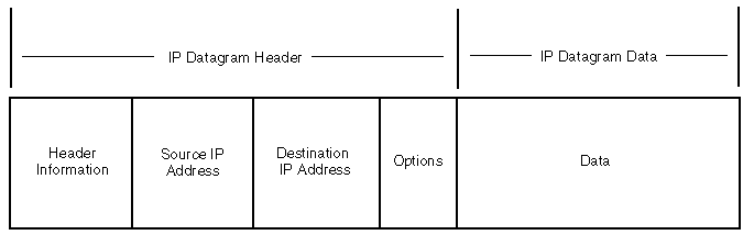 IP defines the form that packets must take and the ways that packets are handled when they are transmitted or received. The form the packet takes is called an IP datagram. It is the basic unit of information that is passed across a TCP/IP network. The IP datagram consists of a header and a data section. The header section contains the sender's (source) IP address and the receiver's (destination) IP address and other information. Figure 4 shows the general form of an IP datagram.