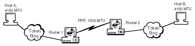 The Path MTU discovery process prevents fragmentation between two routers. Figure 5 illustrates a sample Path MTU discovery process, followed by an example of the steps involved.