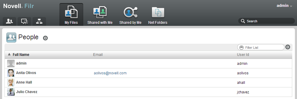 On the Novell Filr site, you can view a comprehensive list of all the Filr users.