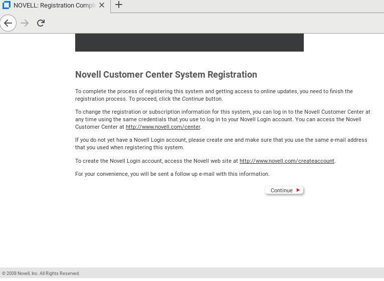 When the message to complete the registration displays, click Continue.