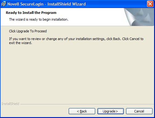 Before installing the new version of Novell SecureLogin, log off and log in again.