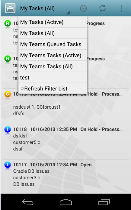 The Tasks tab appears when you first log in to the App. You can use the filter from the Tasks tab and view the following tasks displayed for a logged-in user: