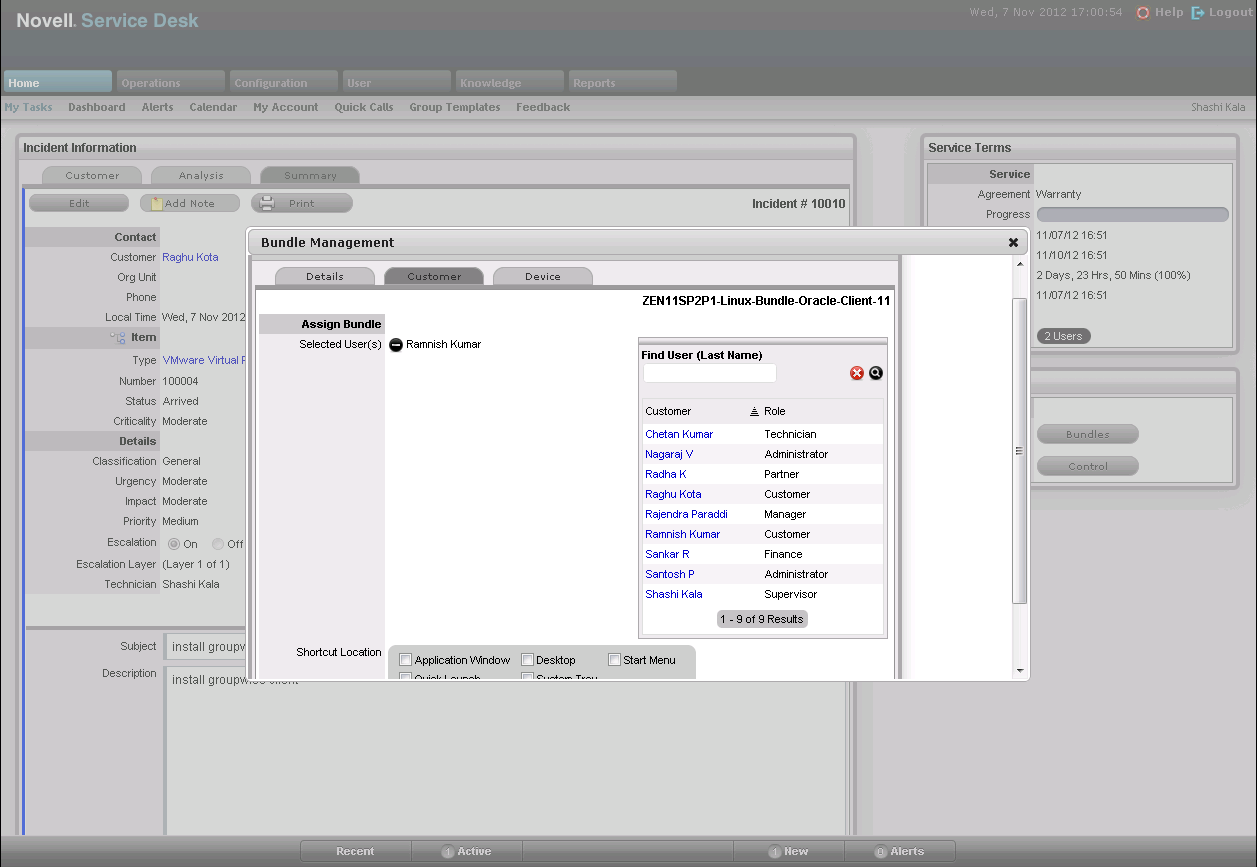 You can use the Novell Service Desk user interface to assign bundles to customers. The assignment changes are reflected in the ZENworks Control Center of the ZENworks Primary Server that is configured with Novell Service Desk.