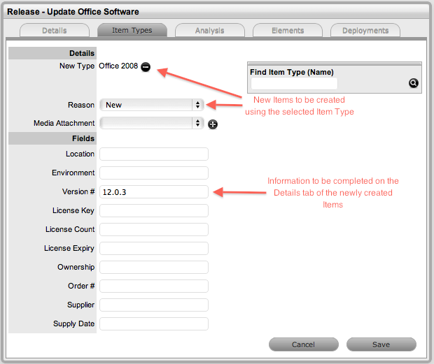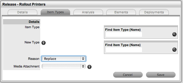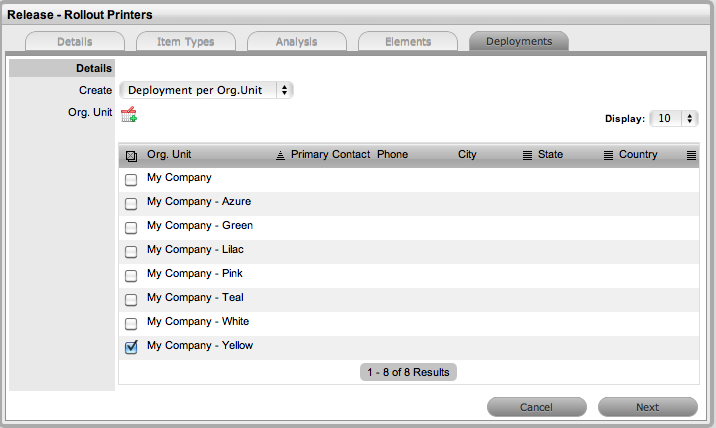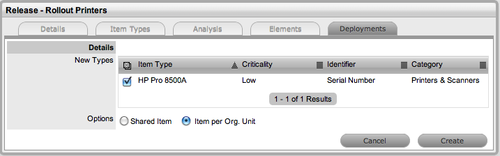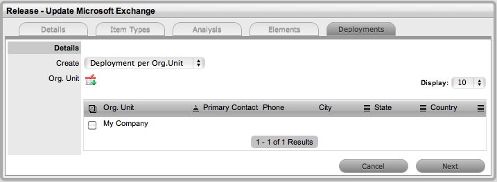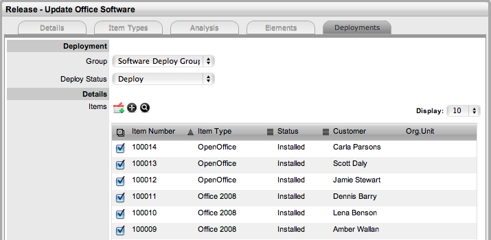 Deployment Tasks are the activities that are completed as part of a Release, for specific Customers, Organizational Units or Everyone when adding a new Item, or updating or replacing an existing Item in the CMDB.