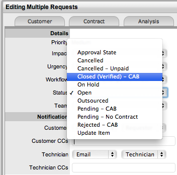 For Status updates, the options will be Open and Closed-Resolved. If all Tasks are Open, the only option displayed will be Closed-Resolved. If the Tasks have a mix of the two States, then Closed-Resolved and Open will be listed as Status options.
