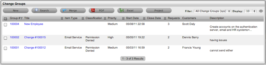 Displays all Change Requests logged in the system regardless of their Status or Assignment. |