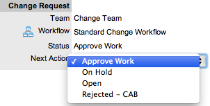 Change Workflows within the system ensure that each RFC is handled with consistency, based on the risk and impact assessment of the CAB. Change Workflows define the actions required to correctly implement the change, and define the responsibilities, authorization and timescale expected to manage the change.
