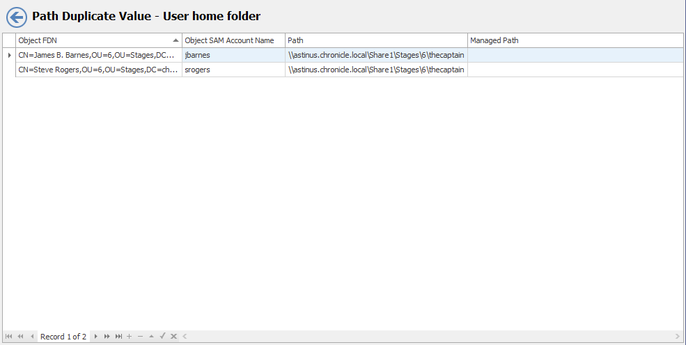 This anomaly report indicates that two or more objects have been detected that contain the same value for the respective path attribute (e.g. home folder).