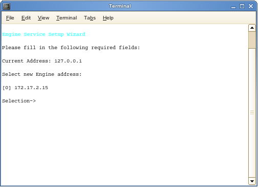 Specify the IP address of the server hosting the NSM Engine and press Enter.