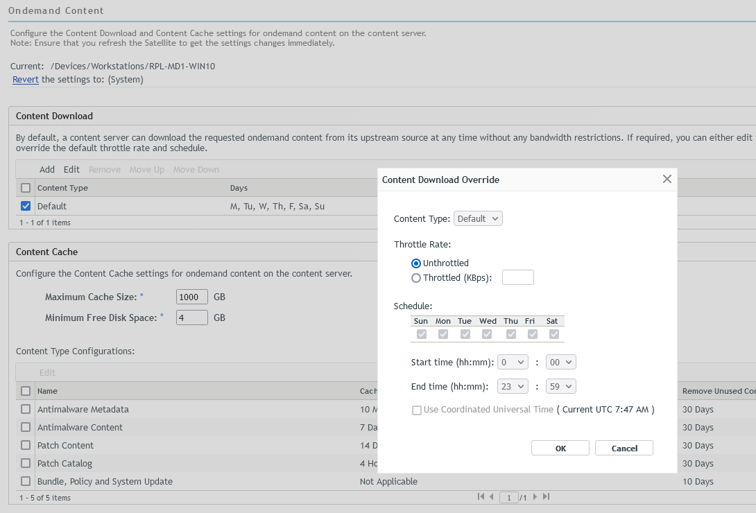 OnDemand content distribution blacked out schedule can be configured at each content type, so that during peak working hours the content distribution using ondemand mode will be stopped in the zone to reduce the traffic load and any requests from manage devices for the content that should be served in the ondemand mode will not be served.