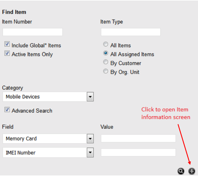 NOTE:This option is only available to Technicians if the system Administrator has enabled the Create Items option within the Setup>Privileges>User screen of the application.