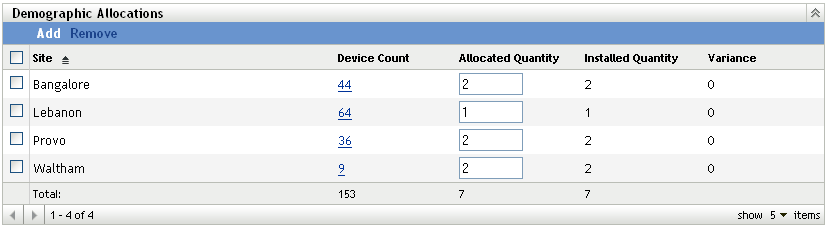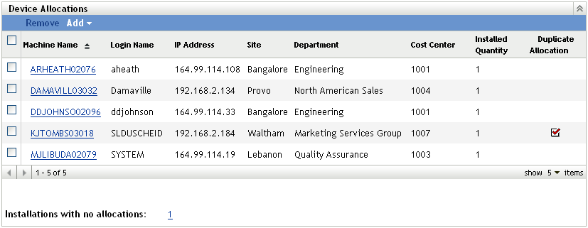 • Duplicate Allocation: Includes a check mark if the device’s installation is also included in a demographic allocation.