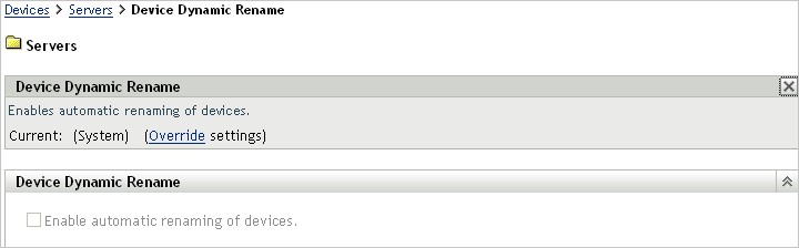 5. Click Override settings to activate the Device Dynamic Rename panel.