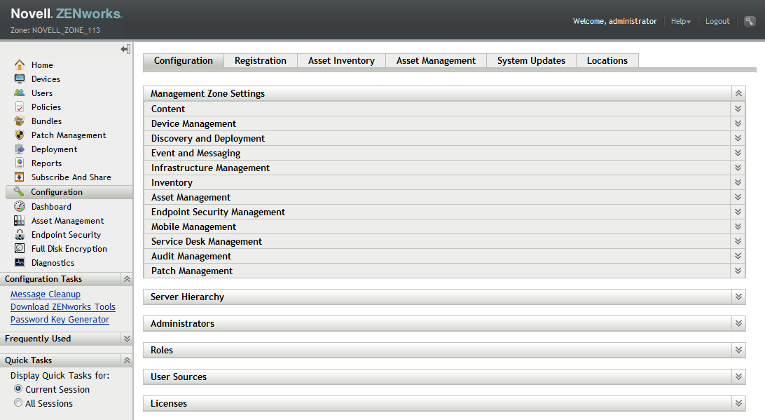 In ZENworks Control Center, click to display the Configuration page.