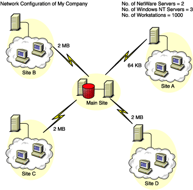 The following figure illustrates the network organization of a enterprise with servers in different locations.