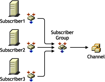 Another use of a Subscriber Group is that when the group is associated with two or more Channels, you can edit the group's membership more easily than making the same changes in multiple Channels. For example, to remove a Subscriber from one Subscriber Group, you just edit that one group's properties. To remove that same Subscriber from several Channels, you need to edit each Channel's properties.